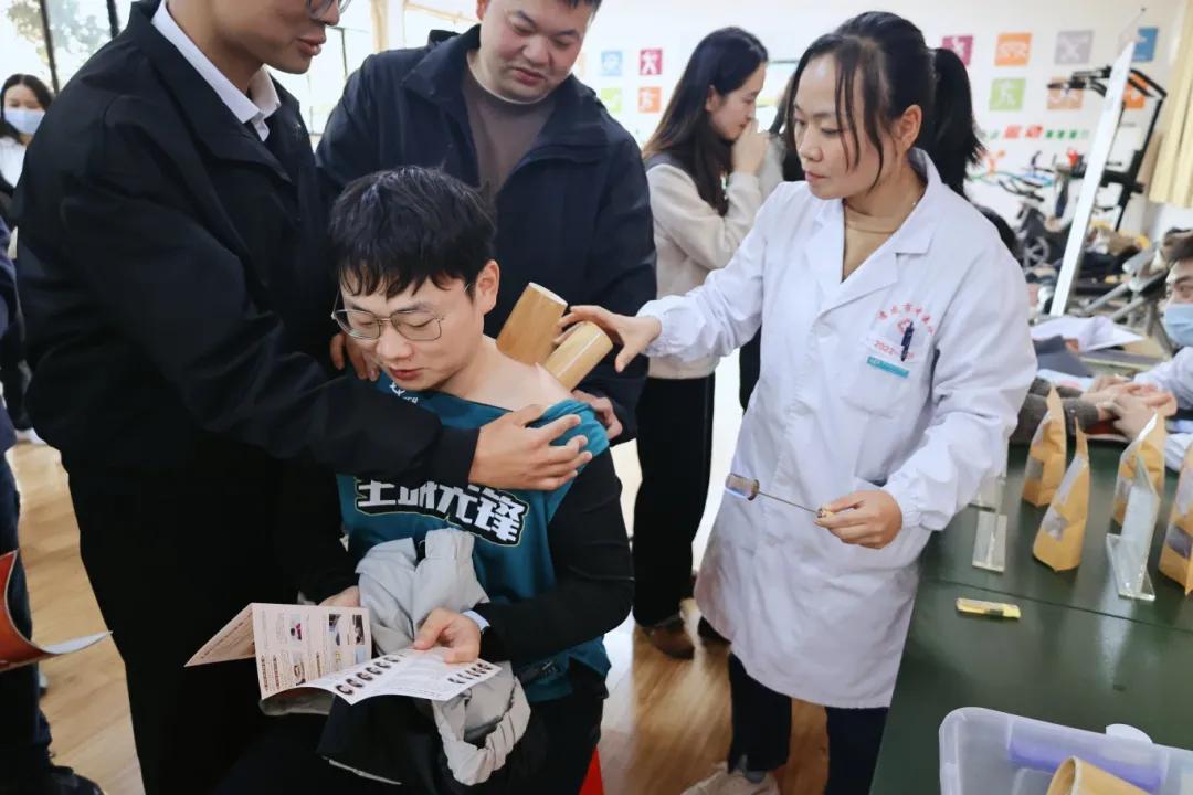 活动还设置了中医适宜技术体验环节。在康复科与治未病科医护人员共同设立的体验区中,大家现场体验了中医把脉、正骨推拿、拔罐、刮痧、艾灸等多项特色服务。医护人员不仅耐心解答各类健康疑问,还发放了精心准备的中医保健知识宣传资料。通过这种“零距离”的亲身体验,干部职工们切实感受到中医药“简、便、廉、验”的独特优势,进一步切身体会到了中华民族的瑰宝——中医药文化的独特魅力,增进了解与自信,激发了浓厚兴趣。